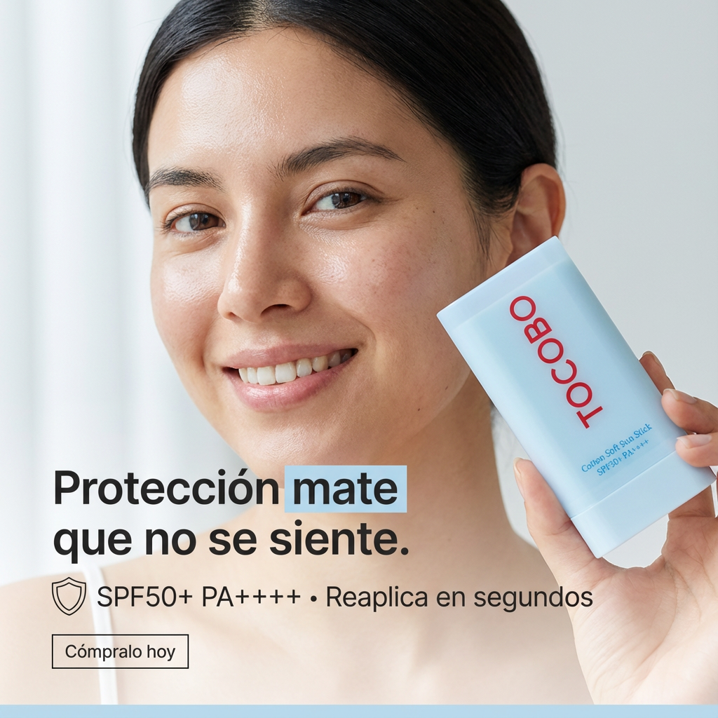 Protector solar en barra TOCOBO SPF50+ PA++++ con acabado mate. Controla el sebo y previene el brillo, ideal para pieles mixtas a grasas. Su formato compacto permite reaplicar fácilmente durante el día.